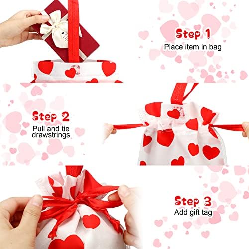 12 Pcs Valentines Gift Bags Drawstring Fabric Gift Bags for Christmas Valentines Reusable Gifts Heart Gift Bag for Girlfriend Boyfriend Anniversary Wedding Bridal Shower Anniversary, 7.9”x15.8”