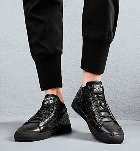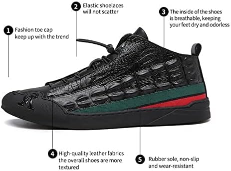 DeesGames Men’s Crocodile Print Leather Casual Shoes Cowhide Crocodile Print Leather Shoes Non-Slip Casual Fashion Sneakers (Black,6.5,Men)