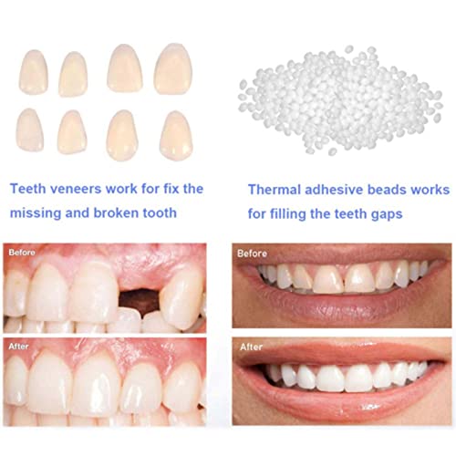 LIQIU Temporary Fake Teeth Tooth Repair Kit, Replacement for Filling The Missing Broken and Gap, 60pcs Fix Veneers and10g Beads, Restore a Confident Smile, White, 1.0 Count, (Pack of 1)