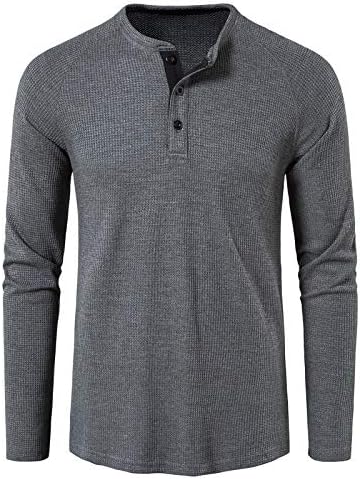 LOCALMODE Men’s Casual Crew Neck Long Sleeve T Shirts of Waffle Henley