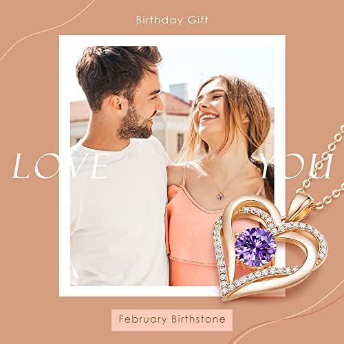 LOUISA SECRET Love Heart Birthstone Necklaces for Women 925 Sterling Silver Rose Gold Pendant Forever Diamond Jewelry Valentine’s Day Christmas Anniversary Birthday Gifts for Wife Girlfriend Mother