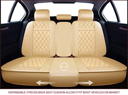 OASIS AUTO Car Seat Covers Accessories Full Set Premium Nappa Leather Cushion Protector Universal Fit for Most Cars SUV Pick-up Truck, Automotive Vehicle Auto Interior Décor (OS-009 Tan)