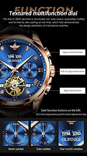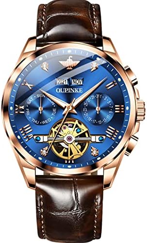 ⌚【OUPINKE Up-Grade Men’s Watch】Skeleton Tourbillon Design with date display, the perfect fusion of modern and classic,bringing you an extraordinary artistic beauty.High Quality assurance,Premium Imported automatic movement,more than 10 years of service life