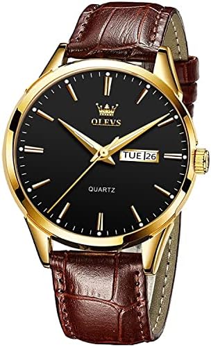 Be the first to review “OLEVS Watches for Men Brown Leather Gold Case Analog Quartz Fashion Business Dress Watch Day Date Luminous Waterproof Casual Male Wrist Watches”