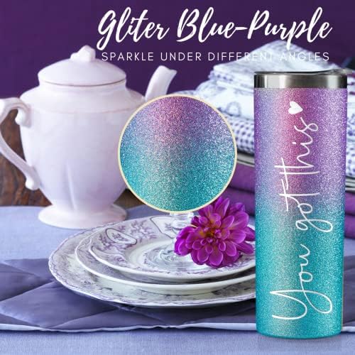 Onebttl Inspirational Gifts for Women, Motivational Encouragement Job Promotion Congratulations Gifts for Women, Friends, New Mom, Coworkers, Besties, Mom-to-be, 20Oz Skinny Glitter Tumbler, Purple