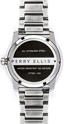 Perry Ellis Mens Waterproof Stainless Steel Watch, 42mm Slim Line, Quartz Luminous Minimalist Fashion Wrist Watches for Men