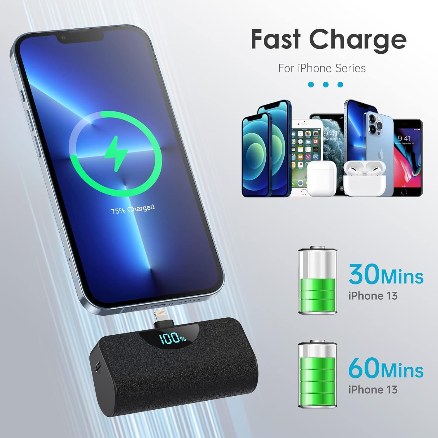 [2023 Verison Upgraded Capacity]: 5200mAh Capacity small portable charger is big enough to fully charge your iPhone 14 above 1 times or iPhone 8 2 times. Enjoy your phone everywhere and Need not worry your phone is short battery.
