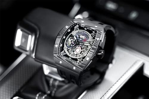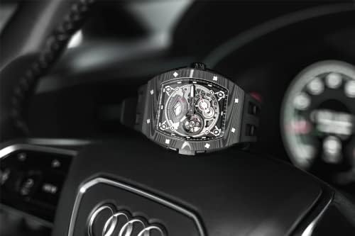 [TSAR BOMBA 8210- Classic Design] The cool circular skeleton design inside makes this watch look even more distinctive, endowing the watch wearer with mechanic-like judgment and responsiveness. Featuring an ergonomic double bridge design, the case is made of carbon fiber, a high-strength fiber containing more than 90% carbon, which not only reduces in weight, but also hardens to an ultra-hard material 10 times harder than ordinary steel.