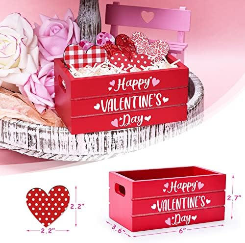 Valentine Tiered Tray Decorations Valentine’s Day Mini Wood Crate Set Happy Valentines Day Tabletop Centerpiece Wedding Anniversary Party Supplies Farmhouse Love Heart Home Decor